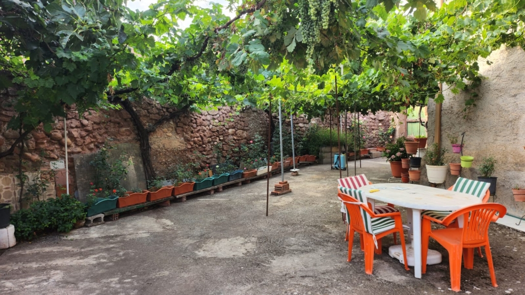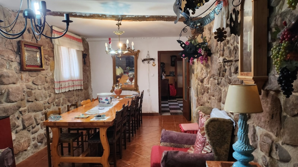 La planta baja dispone de un gran merendero con cocina de leña, perfecto para reuniones y comidas en familia. Además, cuenta con una cocina totalmente equipada con electrodomésticos, un baño adicional y acceso a un patio amplio con parras de moscatel, ideal para disfrutar al aire libre. También dispone de un trastero y un aseo exterior, proporcionando espacio adicional para almacenaje.